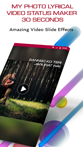 Share your feelings with your loved ones with this cool video status editor app. Just pick some of your images and with right click see preview your lyrical video and save. You can share with one touch on social media.app allows you to pick your favorite pictures and add your favorite song lyrics from collection of songs. You just have to pick some lyrical lines that match your mood and photos.
