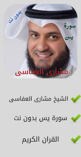 The Mishary Al-Afasy application of Surah Yassin without the net allows you to listen to Surah Yassin without the net through your phone with ease and pleasure by being free so that the user can enjoy downloading Surah Yassin without the net wherever he is.