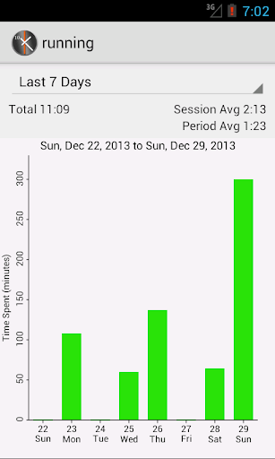 - you can see charts of how much time you practiced for the past 7 days, 15 days, a month (and more)