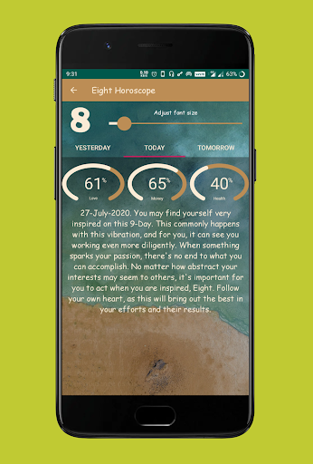 Daily Numerology Horoscope feature gives you the most accurate free daily numeroscope on Google Play Store! Also read your weekly, monthly and yearly numeroscope for all the Numerology signs. Share the Numerology horoscope using the share feature.