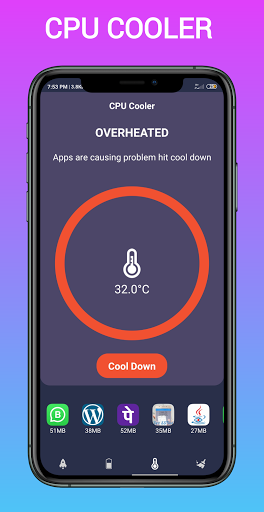 your android phone CPU temperature with one tap. phone cleaner pro is a professional cpu cooler app that can minimize your CPU temperature.