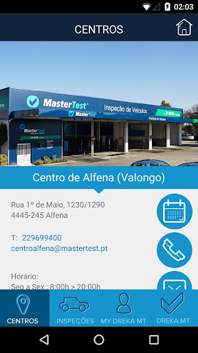Pode encontrar um centro perto de si, por pesquisa livre ou mapa de proximidade, com acesso direto a Contactos e marcação de inspeções.