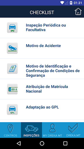 Apresenta uma navegação simples e intuitiva, com acesso rápido às 4 principais funções da aplicação: Pesquisa de centros de inspeção, toda a informação sobre inspeções, área privada de gestão de viatura ou frota e informação sobre a DEKRA, Líder Mundial de Inspeções Técnicas