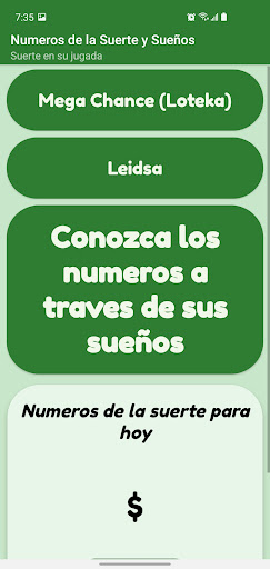 En esta aplicación se obtienen los números que tienen un alto porcentaje de salir en las diferentes loterías, ademas se obtienen números de la suerte específicos para el Mega Chance (Loteka) y todos los sorteos de la Leidsa para República Dominicana y Puerto Rico.
