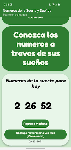 Regrese diariamente a la aplicación de Números de la suerte y Sueños para obtener los números de la suerte de cada día.