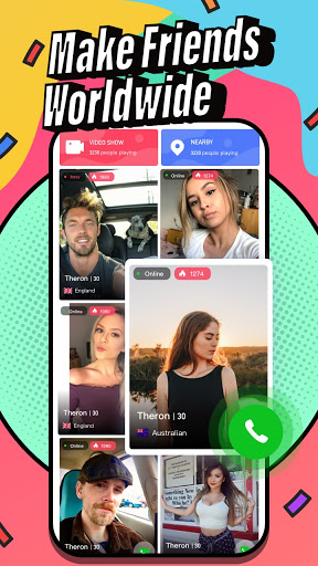 It’s a no pressure way to find tender dates: video chat, private call and passionate dating online. Remember good polite conversations and interesting pickup lines are half the success of the communication! All friends start from strangers. Don't wait online, just greet the current stranger calling you(future friends).
