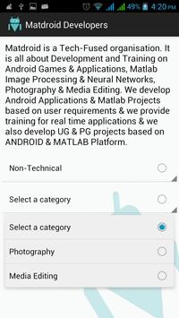 Matdroid is a Tech-Fused organisation. It is all about Development and Training on Android Games & Applications, Matlab Image Processing & Neural Networks, Photography & Media Editing. We develop Android Applications & Matlab Projects based on user requirements & we provide training for real time applications & we also develop UG & PG projects based on ANDROID & MATLAB Platform.