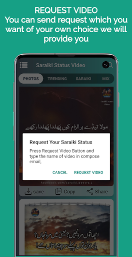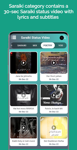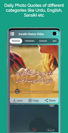 This app has various categories such as Photos, Trending Status, Saraiki Status, Mix Status, Poetry Lyrics, Saraiki Status Quotes. All of these categories have so many videos that you can’t just see one or two.