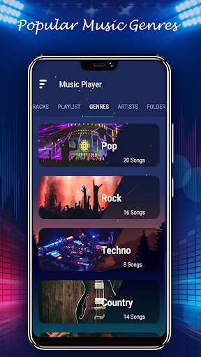 Organization is everything. Therefore, the music player 2021 offers 7 different music genres ready to be inserted according to your musical taste. They are: Pop, Rock, Techno, Country, Jazz, Classic and Funk. In addition, the player also has a beautiful and robust audio viewer for your entertainment.