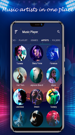 Your songs automatically organized by artists and folders containing the artist's photo and all the songs available on the device.