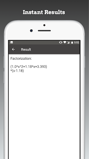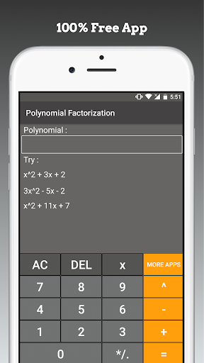 This app is a free math calculator which is able to calculate the factorization of a polynomial in linear and quadratic factors. There is always a factorization into irreducible polynomials of any polynomials with real coefficients.