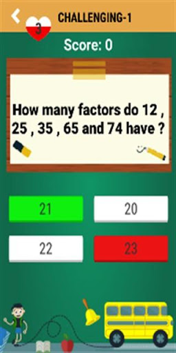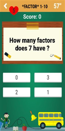 It is a factor contest application for primary and secondary school students.This application has 12 tests which each has 10 questions. You have 60 seconds for each question. You can share the questions with your teachers and friends. This application is free.