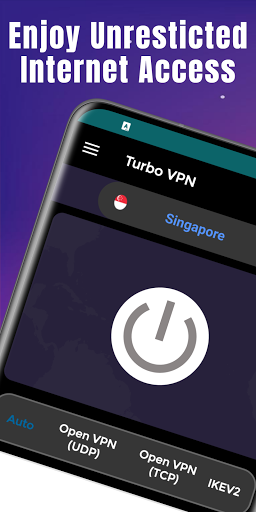 Forget about creating users and signing up. The Turbo VPN Proxy is a tap vpn, meaning you get a fast, secure VPN proxy service with just 1 tap. Just click the "connect" button, the application connects to the remote server instantly. Click again on the same button to disconnect.