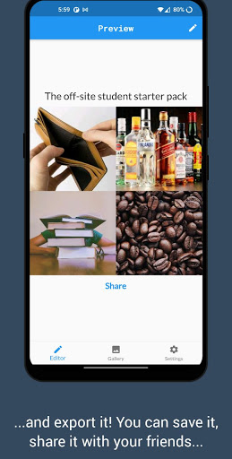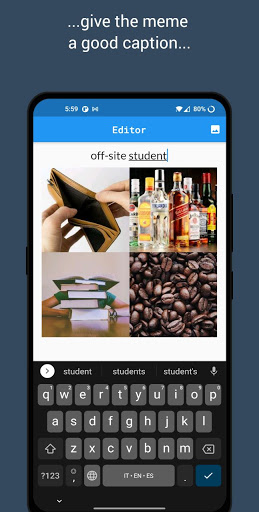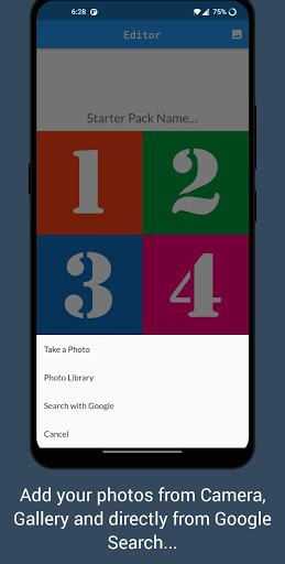 Do you love memes? Do you have the inspiration? With Starter Pack Meme Creator you can create your own Starter Pack memes, choosing your pictures or searching them on Google Images. You also can share them with your friends via Facebook, Telegram, Whatsapp or save them in your Camera Roll.