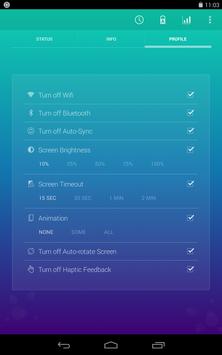 - Power Saver(Bluetooth, WiFi, gps, auto-sync, auto-rotate screen, feedback, screen brightness, timeout)