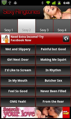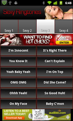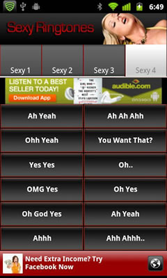 Sexy sounds clips. Spice up your phone or play soundboard to make prank calls.Update: 14 more sexy clips added.Collection sexiest sound clips for your Android. Spice up your phone or play soundboard to make prank calls. Hot amp; Sexy sounds Play for prank calls Make coworkers fool at office or work place Save favorite clips as ringtones Easy navigation and clean layout New ringtones added regularly FREE to downloadTo save as ringtone, hold down the button and press save. And then go to your phone settings, ringtones, choose your recently saved ringtone.Enjoy and have a Hot amp; Sexy timeDisclaimer Please read. We have partnered with AppLovin Corporation to bring you a more social experience including but not limited to tools that allow you to: more easily invite your friends to our app, receive alerts from your friends, and receive social advertising. To serve you this experience we may share your personal data with AppLovin, and the use of your data by AppLovin is subject to AppLovin39;s Privacy Policy and Terms of Use. Both policies are available at www.applovin.com.Thank you for support and understanding. MaxDroid