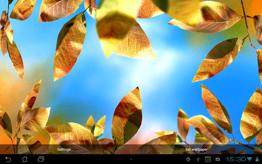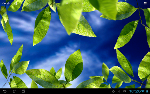 Fresh Leaves is live wallpaper. You may change backgrounds, on/off elements, and more ! All in 3D in realtime - it's not a movie.
