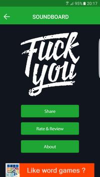 If someone bother you, just push the button. If someone annoying you, just push the button. Nothing to do, just push the button. Simple soundboard with seventy two "F*** You" expressions.