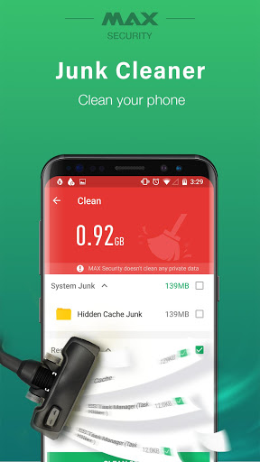 MAX Security also is one of powerful Android antivirus cleaner. MAX Security - professional Free Antivirus (virus cleaner) acts as Android cleaner with memory cleaner, with read/write external storage permission, to clean the junk files of your SD card storage or internal storage.