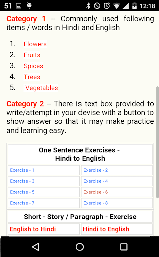 - Translation Exercise (Hindi to English & English to Hindi ) of