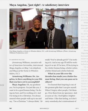 The Maya Angelou Tribute Publication, brought to you by the creators of American CurrentSee, a new substantive magazine committed to transcending race through delivering the awareness of a culture free of government dependency and opening up the door to self-reliance!
