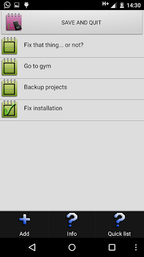 Click the widget to view the list, add item, delete item, edit item, check/uncheck items (checked=done, unchecked=to do).