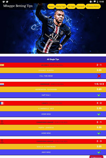In our Mbappe Platinium Betting Tips application, there are only football betting tips. We are analysis 30 leagues in the world and provide you tips. We are providing special high odds tips every day of year. We win a lot and we want you win too.