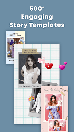 > Create the best photo stories and posts using trendy templates in categories like Polaroid, birthday, minimal, love, floral, travel and many more.