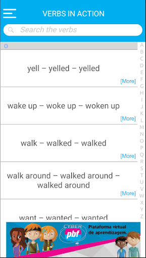 আপনার ইংরেজি উন্নত করার জন্য PBF আপনার জন্য অন্য সরঞ্জাম নিয়ে আসে।এই অ্যাপ্লিকেশনটি দিয়ে আপনি দ্রুত নিয়মিত এবং অনিয়মিত ক্রিয়াগুলির সাথে পরামর্শ করতে পারেন।আপনি সঠিক উচ্চারণটি শুনেন, অনুবাদটি শিখুন এবং এখনও একটি বাক্যে ক্রিয়াটি কীভাবে ব্যবহার করবেন তা দেখুন।উপরন্তু, আপনি যা শিখেছেন তা অনুশীলন করার জন্য আপনার জন্য গেম রয়েছে।ইংরেজি শেখার ক্রিয়া কখনও সহজ হয়েছে না।