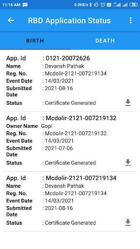 Through this facility on our mobile app any one can easily download the digitally generated certificate and track the status of our certificate.