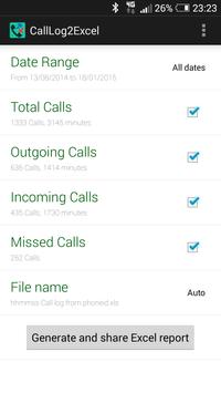 Just one tap to generate your call history report in Excel format and share it by mail, upload to the cloud, save on your device or whatever you want to do with this useful information. Also, you can apply useful filters like date ranges or call types.