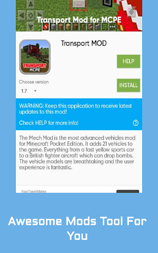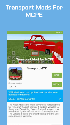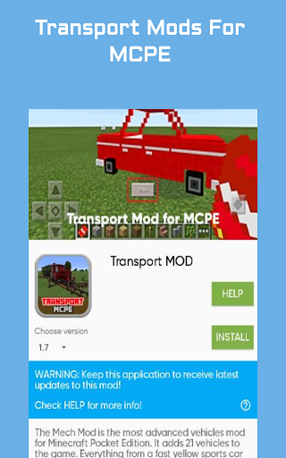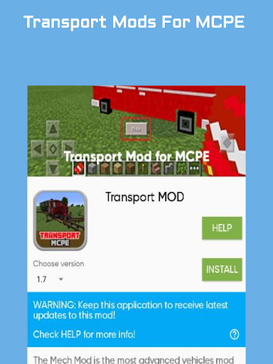 Transport Mod for MCPE is an application that give you the easiest way to install Transport Mod into your Minecraft world.