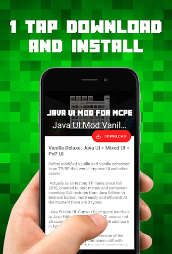 This Java UI Mod for Minecraft PE application help you download & install "Vanilla Deluxe: Java UI Mixed UI PvP UI" into your Minecraft Pocket Edition game. Forget all those File Explorer or BlockLauncher, and get things done faster and easier with our 1 tap installer.