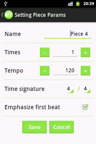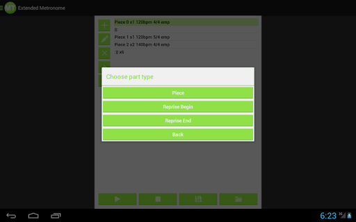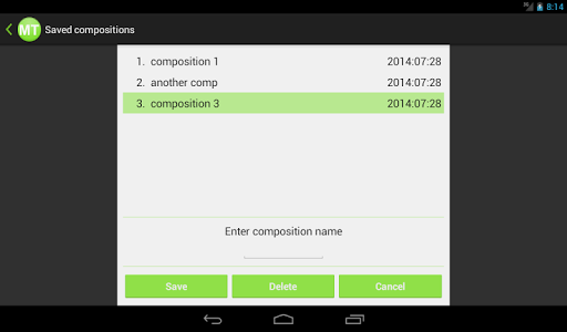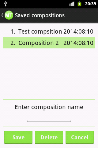 In extended mode you can compile you composition from pieces with different tempos and time signatures, save compositions to db and load compositions from db.