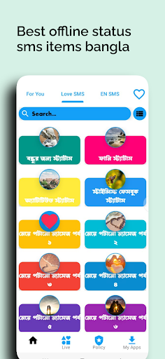 Een buitengewone Bangla -status- en bijschrift -app die op het punt staat om uw berichten op sociale media leuker en aantrekkelijker te maken.> De mogelijkheid om uw statusbericht en bijschrift te delen met uw vrienden en volgers op sociale media