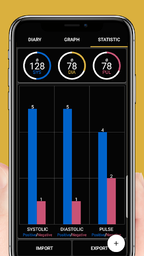 - Graphs and Diagrams to analyze your blood pressure and pulse.