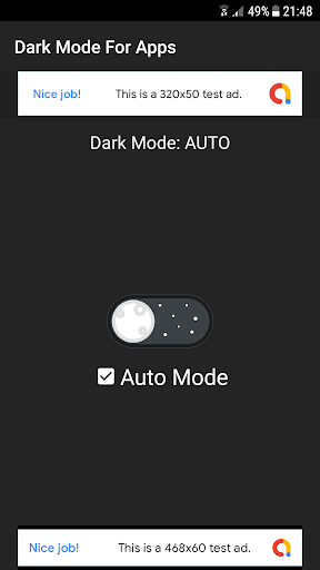 This application helps to activate dark mode, ie night mode, on mobile devices that do not offer a dark mode option in the system settings.
