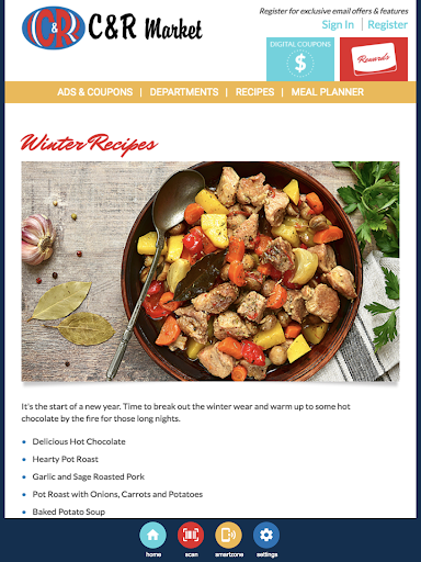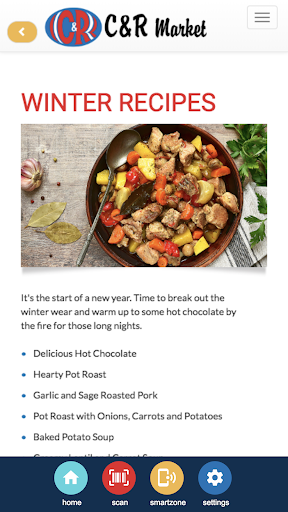 The C&R Markets app enhances your grocery shopping experience. If you shop at a participating C&R Market store, use this shopping companion app to help save you more money. Along with being able to view store ads and coupons, the SmartZone feature allows the grocer to send deals and announcements to your phone. As you wind through the aisles of the store, be ready for offers to pop up on your phone.
