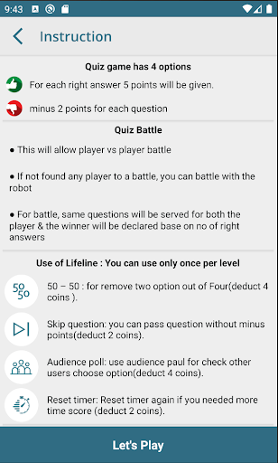 • 4 Lifeline (50/50, Skip, Audience Poll and Timer)