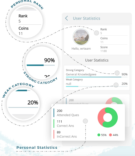 • Check Your full statistics, Your weak and Strong Subjects, Know how many questions You attempted and What was the Your strongest area