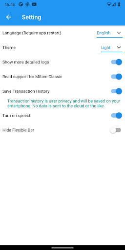 This application functions to read balance information and transaction history that you have made via the NFC smartphone.