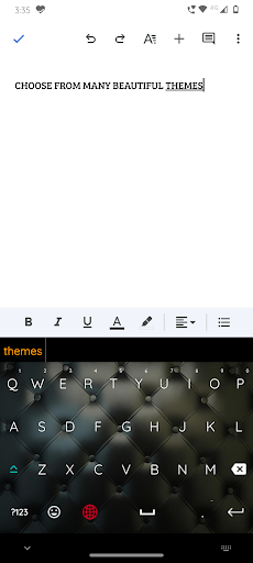 You can also set various gorgeous themes as the background for the keyboard. Just head over to themes and choose one. The keyboard also has word suggestions and emojis.