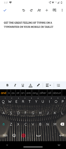 Get the feel of a typewriter on your android phone or tablet. If you are a writer and like the typewriter typing sound then our latest app 'Typewriter Sound Keyboard' is the perfect app for you. Many writers feel 'in the zone' when they are typing on a typewriter. So much so that many writers have invested in a physical typewriter. But of course they miss out all the great editing features of a computer or tablet and also at the end of the day they have to convert from paper to digital form to publish.