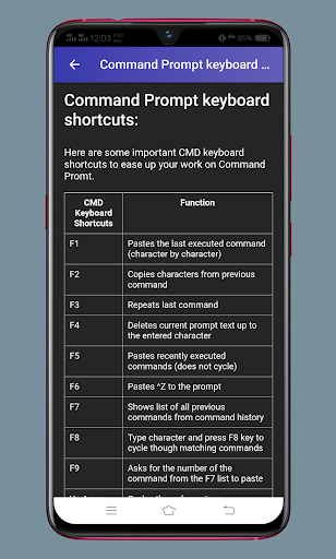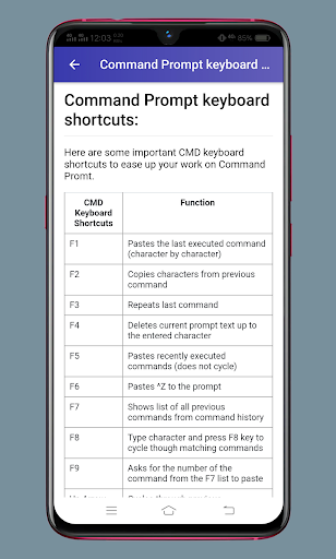 This app also has windows 10 command prompt commands list/windows command prompt cheat sheet, Keyboard Shortcut key and its function to use in command line, how to start how to open command line, how to change the drive in command prompt, how to check windows command prompt history and many more.