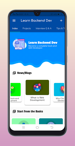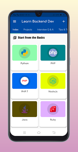 Learn Backend Web Development tutorial is a Free app which teach you how to develop a web site and web application using PHP, Node.js, Python, Ruby On Rails, Django, Flask, Meteor.js, Web Services and Interview Questions all tutorials. Responsive Web design, directly on your Android devices. All the lessons and topics are featured in a simple way and it is divided into small topics with example for better understanding, also it has interactive examples and web editor in which user can try the code themselves and find the result real time within the app.