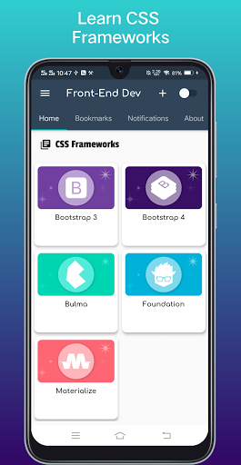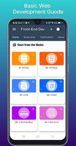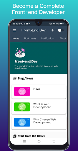Learn Frontend Development, Learn Web Development, Learn Web Design, Learn Website Design. Learn Front-end Web Development is a Free app which teach you by practice and by examples how to design and develop a page web using HTML, CSS, Bootstrap ( Responsive Web design ), Javascript , React, Angular Js, in each course in frontend web development in this app you have tutorial and how to write code and see output of the code.
