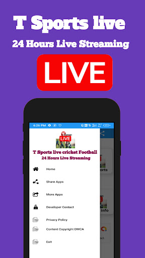 Please note, T sports Live Tv Cricket Football app does not promote any copyrighted video or Live Streaming. Users are guided only by this app. Image icon of the app and other content Which is covered by Fair Use.