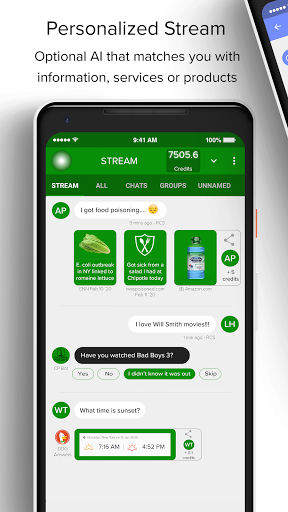 THE STREAM: Once enabled, there is a “stream” attached to each conversation. The stream combines the best of social media and the internet, where you are given recommendations for content, answers and information related to your conversation, but in a separate screen so it’s not annoying. Just swipe left to access it.