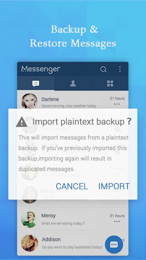 . All new SMS/MMS will be saved in Privacy Messenger locally. Therefore, with this free messaging app,