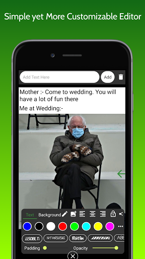 7) Background Eraser. No interruption while doing any kind of text customization as you can customize text while seeing how it will look on actual memes.